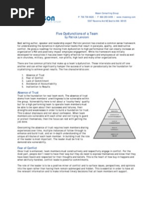 The Five Dysfunctions Of A Team Pdf Summary Patrick Lencioni